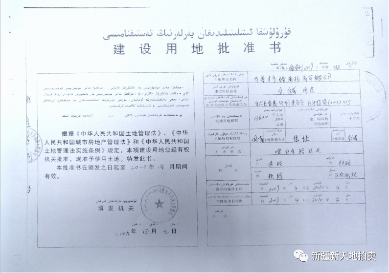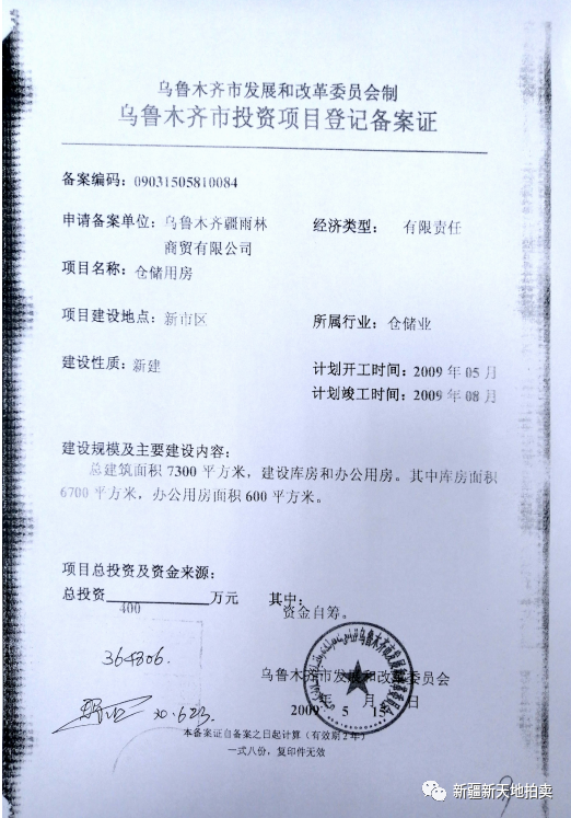 案号:(2014)乌中执字第240号,位于乌鲁木齐市新市区喀什东路北二巷87号土地,面积13620平方米,土地证号:乌国用(2010)第0028236号,土地用途为仓储用地,出让取得;终止日期为2054年4月22日止,现状为空地,宗地外基础设施达到“七通一平”、宗地内达到“土地平整”。